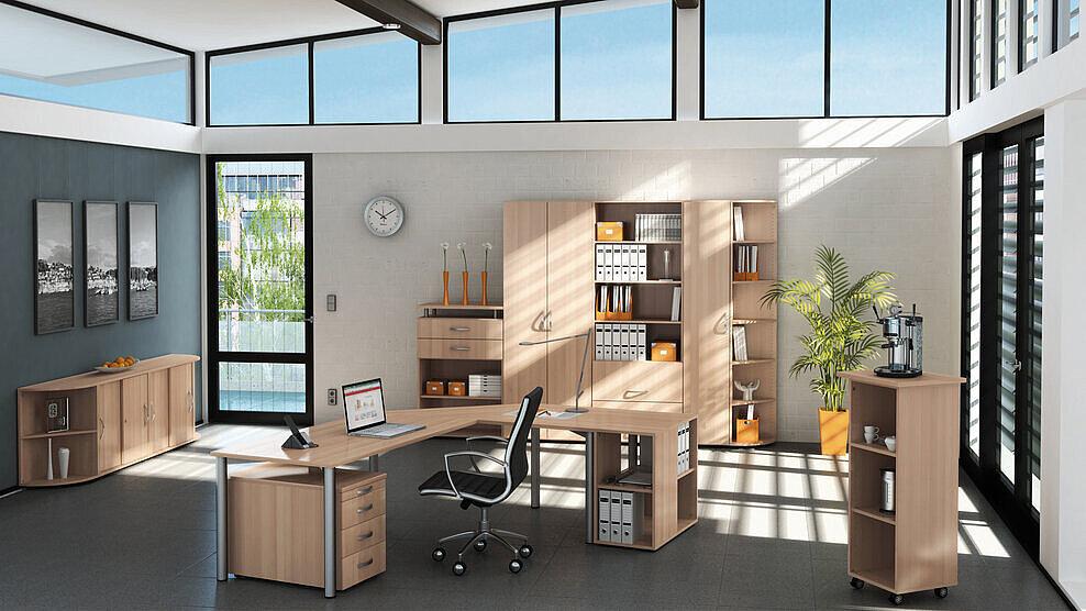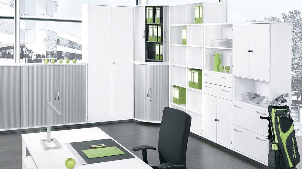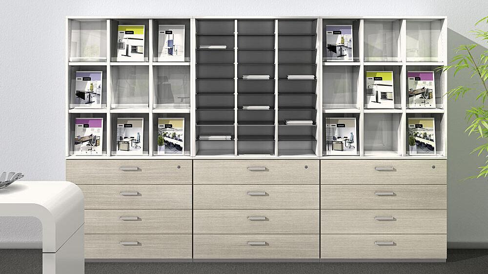 Eine aufgeräumte Umgebung sorgt für einen aufgeräumten Geist. Unsere erprobten Stauraumlösungen bringen Ordnung an den Arbeitsplatz, sodass der Weg frei wird für Ruhe und Konzentration.