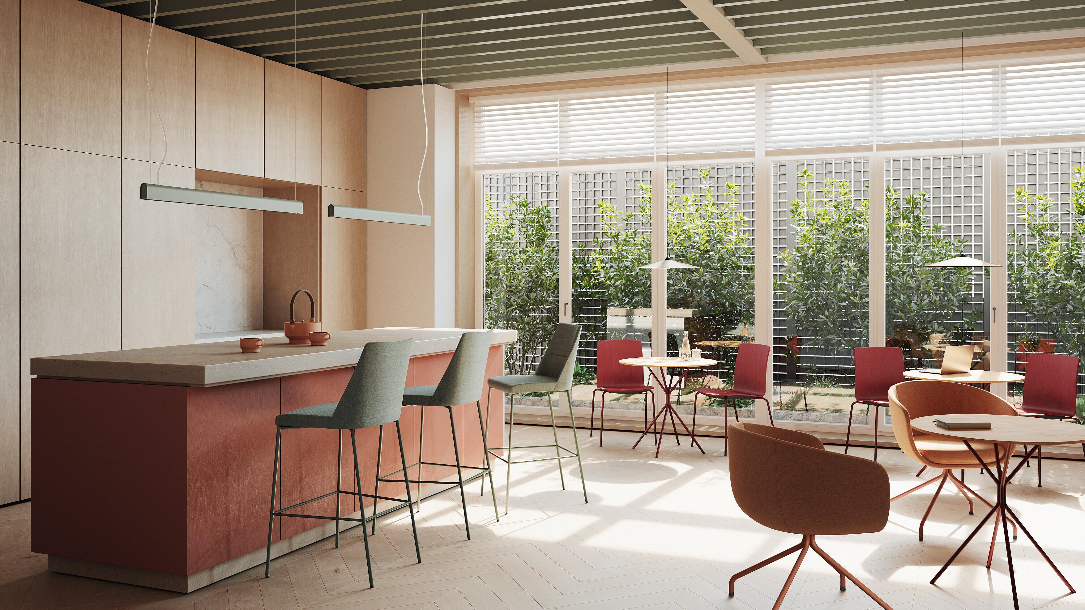 Wir alle wissen, wie uns selbst der kleinste Snack zu neuen Höhenflügen verhelfen kann. So tragen clever konzipierte und kompakt verbaute Küchenlösungen direkt zur Leistungsfähigkeit des Teams bei.